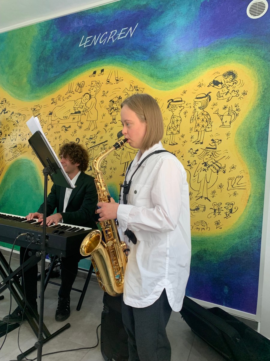 Maja na zdjęciu z ukochanym nauczycielem gry na saksofonie, Panem Michałem Leśniakiem z Konwersatorium Muzycznego.