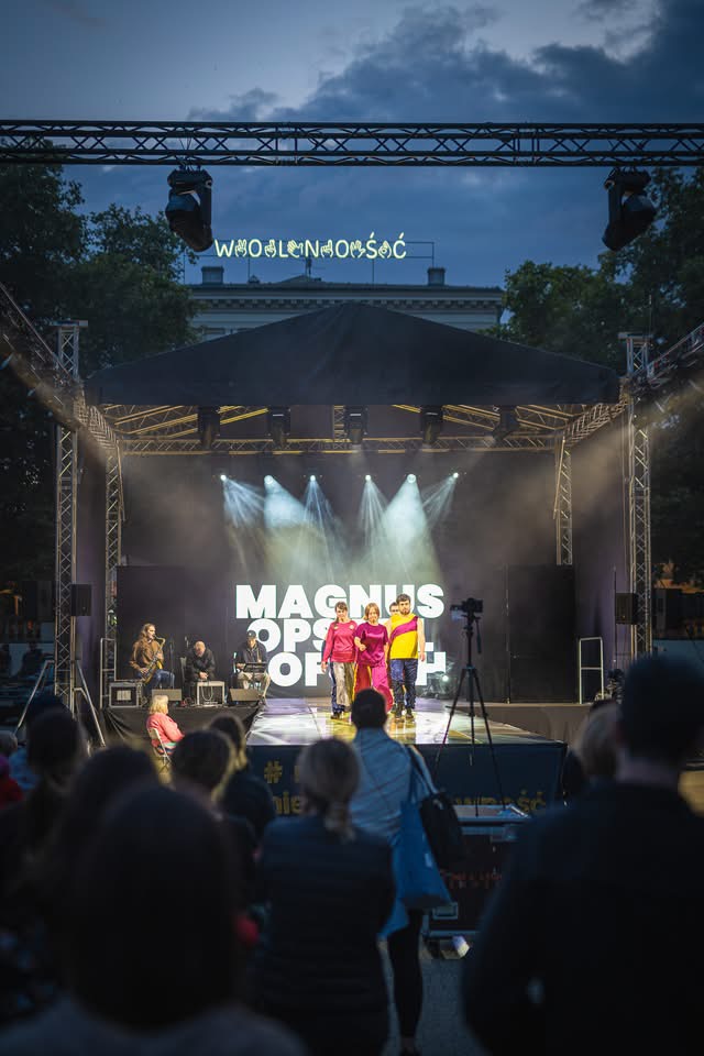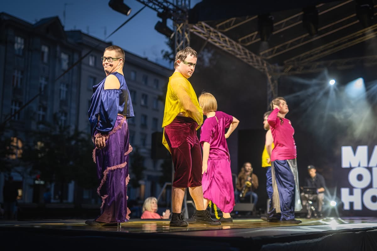 W widowisku z pogranicza performansu, pokazu mody i koncertu, aktorki i aktorzy Centrum Sztuki Włączającej / Teatr 21 zaprezentowali kostiumy stworzone specjalnie dla nich – każdy z nich niósł ważne przesłanie o widoczności, wyrażaniu siebie i wolności.